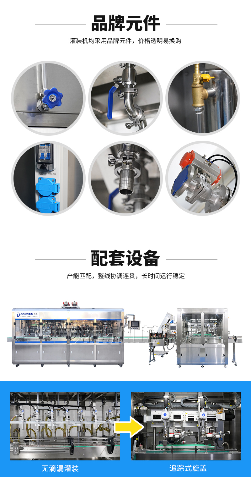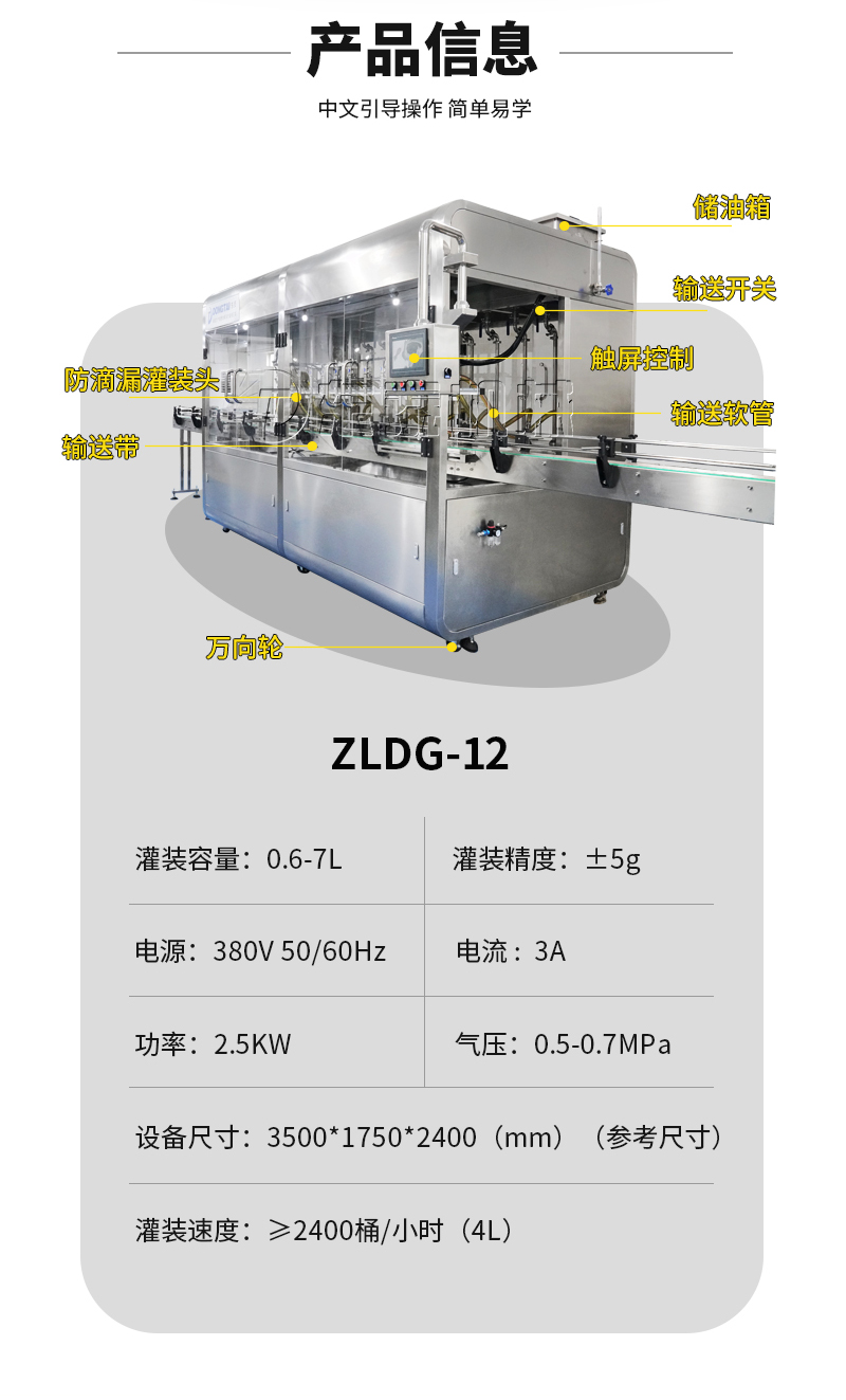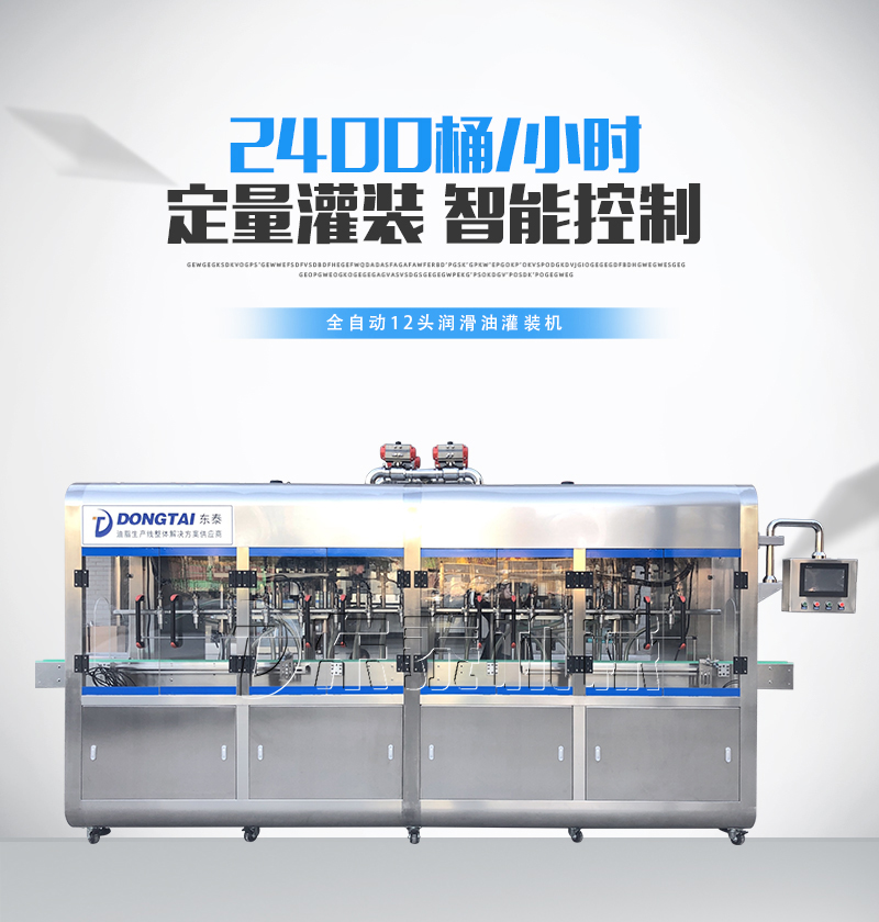 該灌裝機可以配置 高速旋蓋機 油桶貼標機 油瓶噴碼機 油壺自動自動裝箱碼垛機。組成油脂灌裝包裝流水線。節(jié)能、自動化的設(shè)備。