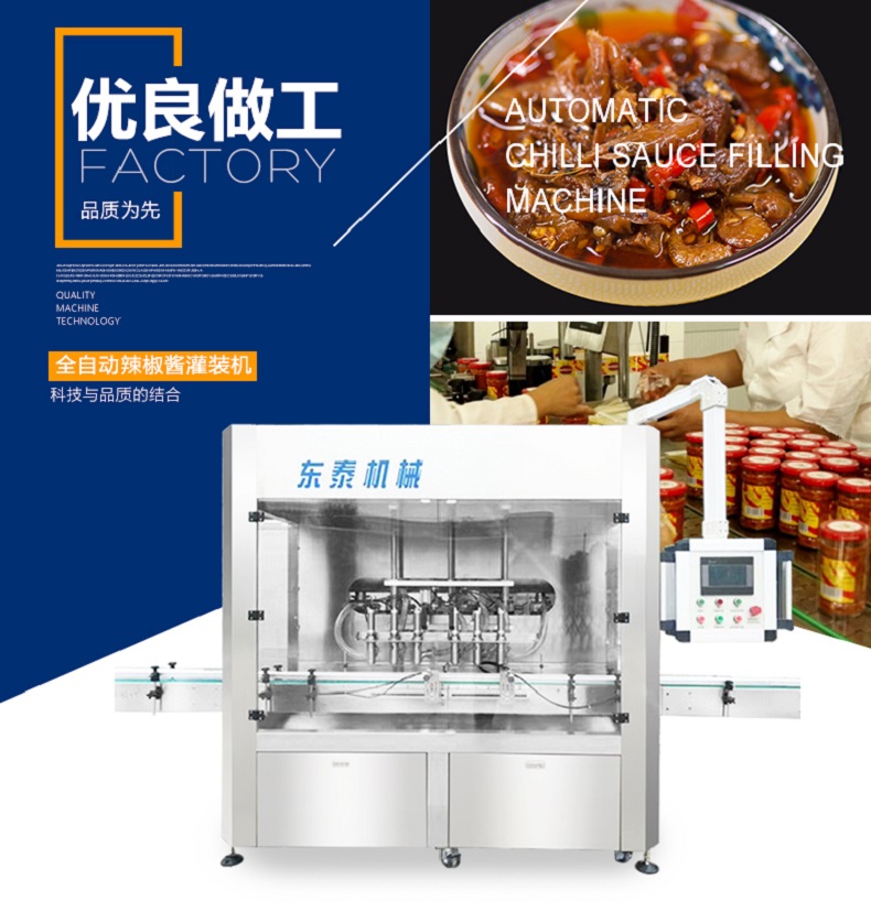 全自動(dòng)辣椒醬類(lèi)醬體灌裝生產(chǎn)線(xiàn)作為公司新研發(fā)的灌裝設(shè)備在市場(chǎng)上起到了關(guān)鍵性的作用,獨(dú)特的技術(shù)讓整個(gè)包裝市場(chǎng)變得富有生命力,是集光,機(jī),電,氣于一體,采用活塞式定量原理,灌裝精度高,操作簡(jiǎn)單,維護(hù)方便,設(shè)備主要材質(zhì):采用SUS304不銹鋼制造,符合衛(wèi)生要求.灌裝過(guò)程采用亞克力透明板與外界隔離,保證灌裝的衛(wèi)生要求。灌裝采用壓力式灌裝,無(wú)需配裝高位罐,簡(jiǎn)化了安裝工序,提高了灌裝效率?蓮V泛應(yīng)用于食品、醬料行業(yè)產(chǎn)品的自動(dòng)化包裝生產(chǎn)。幾乎能夠灌裝所有醬類(lèi)、醬料物體是該款全自動(dòng)辣椒醬類(lèi)醬體灌裝生產(chǎn)線(xiàn)最大的優(yōu)勢(shì),包括大塊肉醬、顆粒醬、濃醬、豆瓣醬、甜面醬、辣椒醬等。