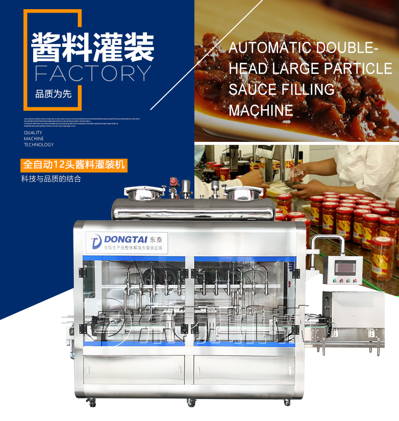 A、顆粒漿狀辣椒醬灌裝機(jī)是本東泰機(jī)械采用先進(jìn)灌裝機(jī)技術(shù)的基礎(chǔ)上,進(jìn)行改造和創(chuàng)新設(shè)計(jì)的產(chǎn)品,其結(jié)構(gòu)簡單、精確度高、操作更加簡便。