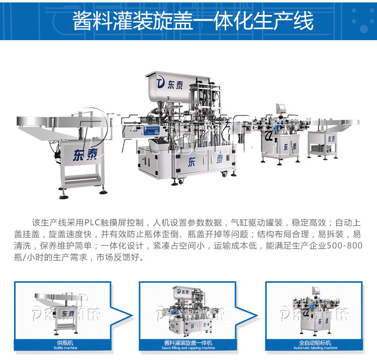 醬料的銷售情況直接關(guān)系到市場(chǎng)的發(fā)展,而醬料要想有一個(gè)好的銷量的話,就需要有好的質(zhì)量作為保障的,而這個(gè)保障就是給予醬料好的灌裝效果,所以這也使自動(dòng)化醬料灌裝機(jī)成為了各企業(yè)生產(chǎn)包裝的得力助手,能有效的完成灌裝任務(wù),在規(guī)格化標(biāo)準(zhǔn)化中更加合理化,對(duì)各種醬料不僅起著保護(hù)的作用,還更為企業(yè)創(chuàng)造著更多的方便,正是因?yàn)槲覀儢|泰一直以來(lái)都是敢于挑戰(zhàn)、敢于創(chuàng)新和突破讓自己的實(shí)力在市場(chǎng)有了很大的進(jìn)步,來(lái)推進(jìn)醬料企業(yè)生產(chǎn)之后,從而帶來(lái)各個(gè)領(lǐng)域的快速的發(fā)展。