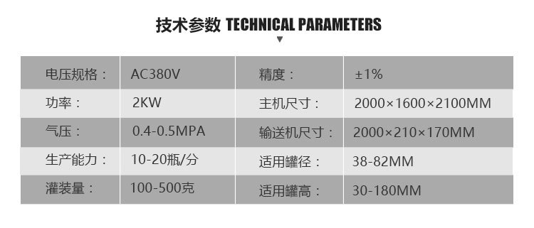 8、該醬類灌裝機大小瓶調(diào)節(jié)方便,配置自動升降裝置。