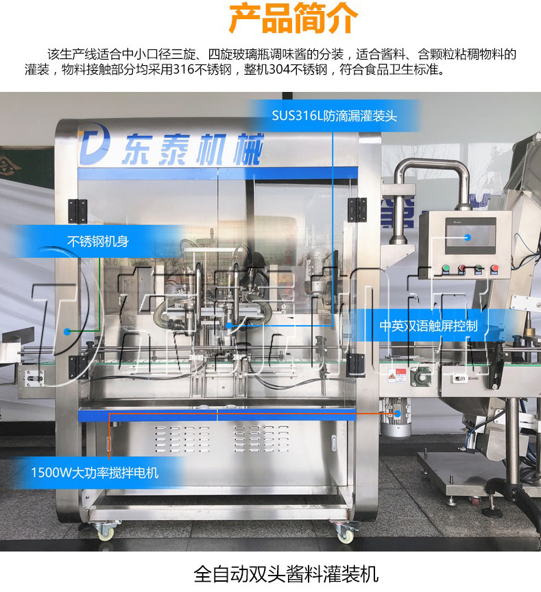 目前的生活水平的提高,也致使了更多人開始在吃上做起文章。生活中的人們對(duì)于吃的要求越來(lái)越高,對(duì)味道的追求近乎狂熱,如今市場(chǎng)上的辣椒醬灌裝機(jī)在使用過(guò)程中操作的實(shí)際操作降低了人員要求并且才做簡(jiǎn)單對(duì)操作眼的專業(yè)要求也在不斷降低,這大大節(jié)省生產(chǎn)成本,深受廣大用戶的歡迎。為了保證醬料的效果能夠穩(wěn)定持久,這款辣椒醬灌裝機(jī)裝有接料槽,防止調(diào)試的時(shí)候或者出故障的時(shí)候物料灑地上以及清理麻煩,走進(jìn)超市放眼望去五花八門的辣椒醬,由此可見辣椒醬灌裝機(jī)的未來(lái)的潛力有多大的。