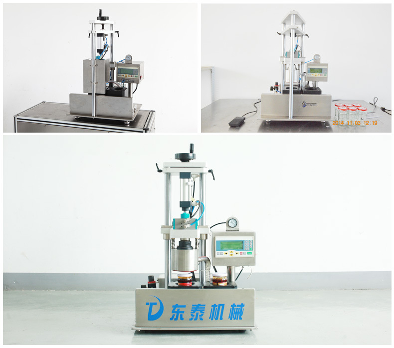 小型玻璃瓶真空旋蓋機是利用氣動執(zhí)行器的旋轉,并通過氣壓帶動氣缸板上的旋蓋頭來回往復運動,從而控制上升和下降;水平氣缸控制夾瓶模具的往復運動等完成機器工作。當瓶蓋旋緊后,旋蓋頭回自動上升,可有效地避免瓶蓋的磨損。同時也表示已經(jīng)可以進入下一個瓶蓋的操作,有效地減少了勞動強度,保證了旋蓋品質,同時,小型玻璃瓶真空旋蓋機只需安裝真空泵和空壓機便可實現(xiàn)抽真空,方便簡單,而且其真空度測試都是經(jīng)過專業(yè)測試,真空度有保障。